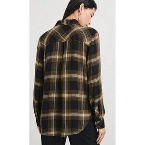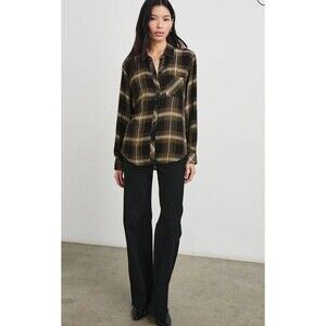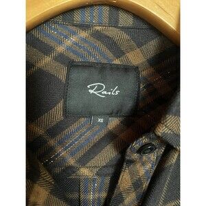 Rails Shirt Hunter Long Sleeve Flannel Plaid Black Carmel Lurex Metallic Gold XS