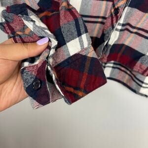 Rails Shirt Hunter Plaid Red White Flanel Top Cropped Button Down size. M