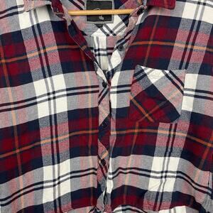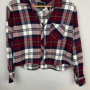 Rails Shirt Hunter Plaid Red White Flanel Top Cropped Button Down