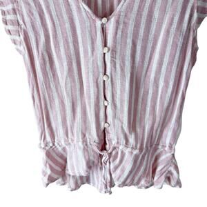 Rails Shirt Women XS Rose Stripe Bretton Peplum Button Front Waist Tie Blouse