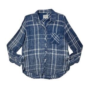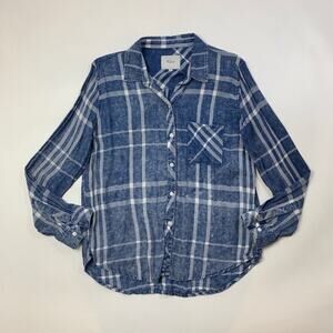 RAILS SHIRT WOMENS M PACIFIC BLUE TENCEL HUNTER PLAID BUTTON UP LONG SLEEVE