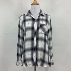 Rails Shirt Womens S Small Black White Hunter Thin Flannel Button Up Long Sleeve