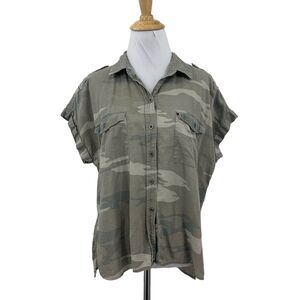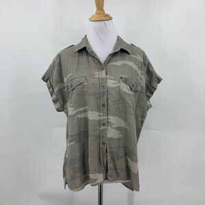 RAILS SHIRT WOMENS S SMALL CAMO CUFFED SHORT SLEEVE BUTTON UP FLAP POCKETS