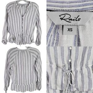 Rails Shirt Women's XS Blue & White Striped Button Up Long Sleeve Marni Linen