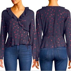 Rails Simone wrap front metallic cherry tie front top. This top is in great used condition