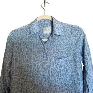 Rails Size XXS Multicolor Josephine Blue Batik Cheetah Print Button Blouse