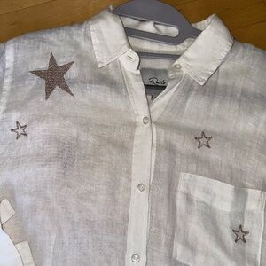 Rails Small Charli White Rose Gold Star Embroidered Shirt ,XS, CB2446