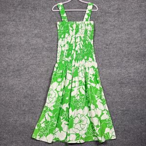 New Rails Size Small Seville Smocked Midi Shift Dress Green Floral Cotton Blend Cottagecore Square Neck Sleeveless