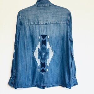 Rails Smith Tribal Aztec Embroidered Sleeve Chambray Button Down Shirt