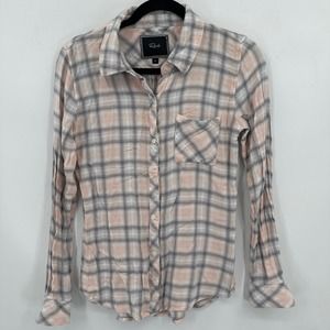 Rails Soft Button front long sleeve top Pink/Gray Plaid Size XS