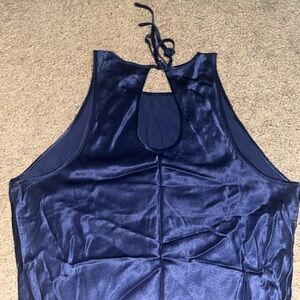 Rails Solene Satin Midi Sheath Slip Dress Navy Blue XS. An embodiment of understated elegance in a rich navy hue. This sleeveless midi dress boasts a lightweight satin crepe with a unique lustrous look. The sheath silhouette is perfect for warm days, featuring an adjustable tie closure at the back. Ideal for those who appreciate fine craftsmanship and comfortable sophistication. Darting at the just for flattering fit. Crafted from a blend of 55% Rayon and 45% Viscose. Approx measurements: 16“ pit to pit, 14.5“ waist, & 47.5-48.5“ length. Great pre-owned condition. No stains/flaws. Smoke/pet free home. Offers welcome. Bundle & save. Ship same/next day. Packaged w/ care.