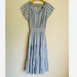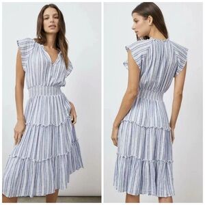 Elegant Rails dress with v-neck. Short sleeves and tiered skirt. Perfect for any occasion.