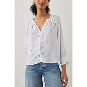 Rails Sz XL Mariah Linen Blend Embroidered Blouse White Longsleeve GREAT!