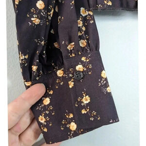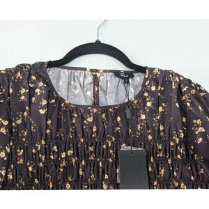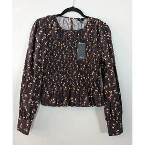 This romantic floral printed top has ruching throughout the body and puffed sleeves. Wear with your favorite jeans or a flattering skirt.