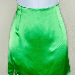 Rails Tate Vibrant Green Satin Side Slit Elastic Band Mini Skirt Small