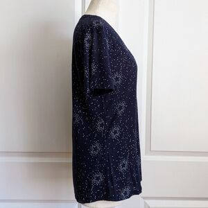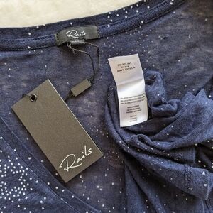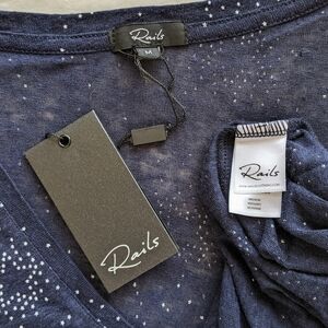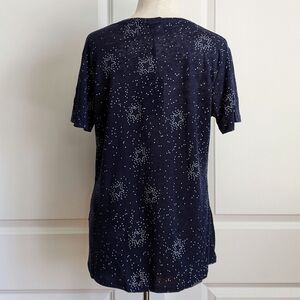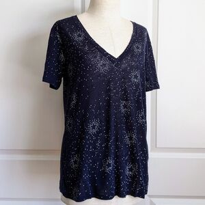 Rails Tee Linen Blend Star Print V-Neck Short Sleeve Semi Sheer Navy White M NWT
