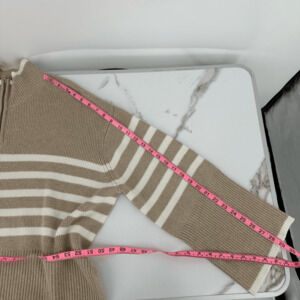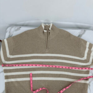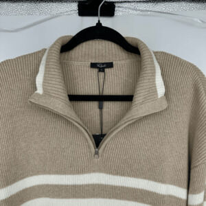 Rails Tessa Womens Sweater Size L Wool 1/4 Zip Ribbed Knit Sand Stripe Preppy
