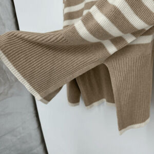 Rails Tessa Sweater Wool 1/4 Zip Sweater Ribbed Knit Sz L Sand Stripe Oversized