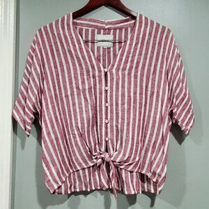 Rails Thea Top Red & White Milos Stripe with Deep V-neck and Front Tie Blouse S