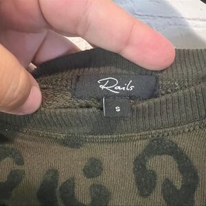 Rails Theo Olive Green Flocked Leopard Print French Terry Pullover Sweatshirt Sm