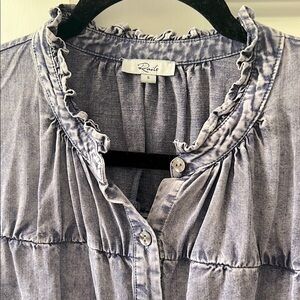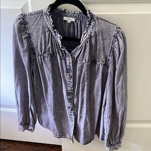 Rails Long sleeve Top soft denim look Puff shoulder Button down