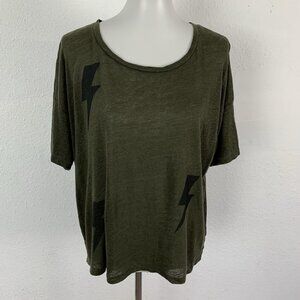 Rails Top Large Green Linen Short Sleeve Boho Minimal Chic Casual