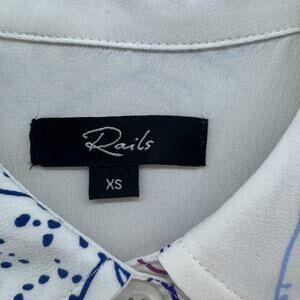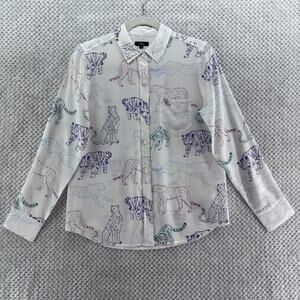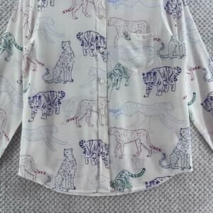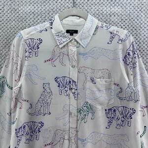 Rails Top Women XS White Kate Silk Tiger Shirt Button Front Long Sleeve Collared
