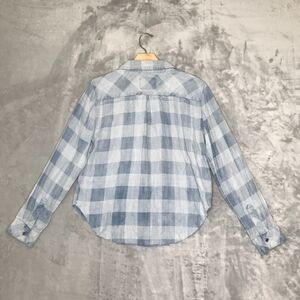 Rails Top Womens Large Buffalo Plaid Chambray Crop Raw Hem Long Sleeve AS IS