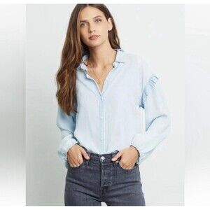 Rails Top Womens Size Small Blue Willow Light Vintage Button Up Ruffle Shoulders