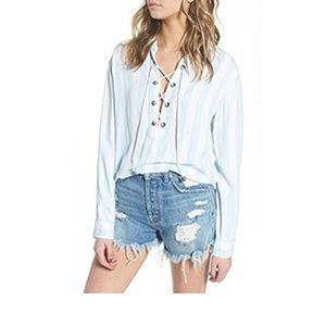 Rails ULI Lace-up Top in Block Stripe - Blue White with rope ties