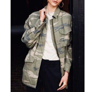 TAGS: rails, utility jacket, camo jacket, womens outerwear, tencel linen, drawstring coat, lined jacket, casual style, fall fashion, medium size