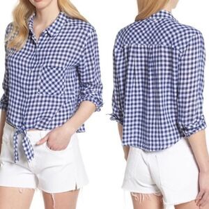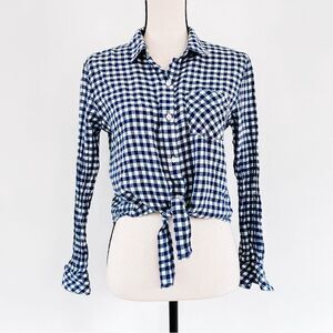Rails Val Navy Blue White Gingham Check Plaid Tie Front Button Down Sz S