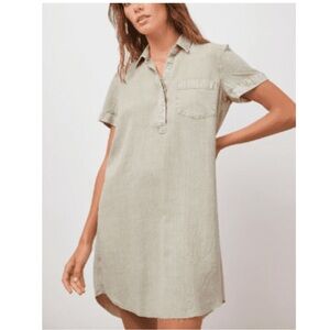 Rails Valerie Raw Hem Shirt Dress Pistachio Acid Wash Green Tan Distressed Linen