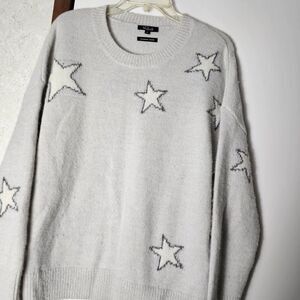 Rails Virgo Star Intarsia Sweater Grey White Women's Size Large Wool Cashmere