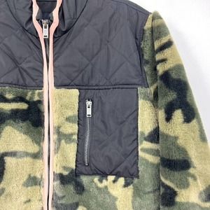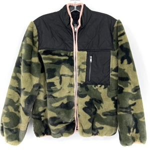 Rails Wesley Camo Quilt Patch Fleece Jacket Womens S Zip Front Green Brown Soft