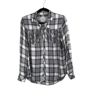Rails Western Dolly Button Down Grey Check Plaid Fringe Flannel Shirt XS/Medium