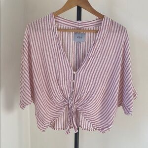 Embrace a chic and modern look with this Rails blouse, featuring a cropped silhouette and a stylish tie-front detail. The white and pink hues beautifully highlight the mandarin collar, making it a perfect choice for casual outings. Crafted from a lightweight fabric, this blouse ensures comfort and style throughout the day.
