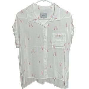 Rails Whitney Champagne Bottle Print Button Up Blouse White - L