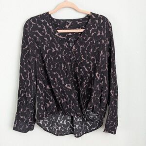 Rails Women Crop Hi-Low Difused Cheetah Blouse Wrap Top
