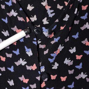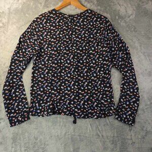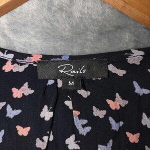 Rails Women M Black LongSleeve ButterflyPrint Ruffles ArtToWear Fairycore Blouse