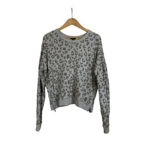 Rails Women Marlo Flocked Leopard Print Pullover Sweatshirt Size L Heather Gray
