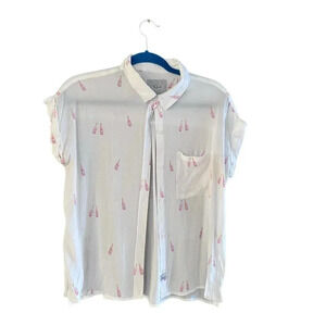 Rails Women White Short Sleeve Button Down Casual Shirt Size Small