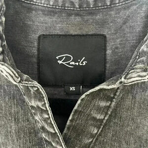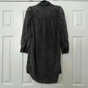 Rails Women XS ADELE puffer Sleeve ACID WASH Denim Dress Gray Lyocell Linen Boho