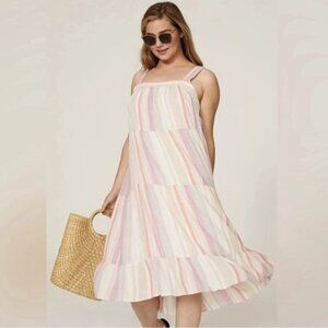 Rails Women’s Amaya LINEN Blend Striped Midi Tunic Dress Juliette Stripe LARGE
