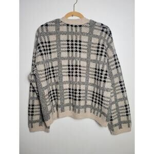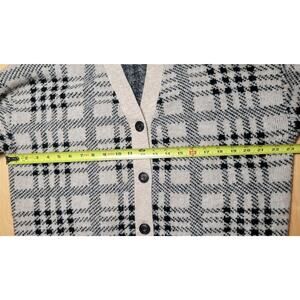 The Rails Women's Button Front V Neck Reese Black Oatmeal Cardigan Sweater in size L is a stylish and versatile addition to any wardrobe. Made of acrylic material in a tight-knit style, this cardigan features a classic plaid pattern in black and oatmeal colors. The V-neckline and long sleeves make it perfect for layering over any outfit, while the button accents add a touch of sophistication. With a regular fit and classic style, this cardigan is suitable for various occasions and is a timeless piece that can be dressed up or down with ease.