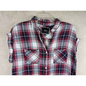 Rails Women's Cuffed Short Sleeve Flannel Shirt Plaid Size M