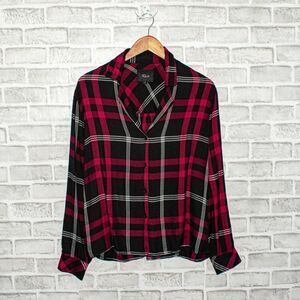 Rails Women's Flannel Shirt Red Black Plaid Camp Collar Size Small
