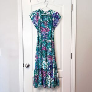 Rails Women’s Gardenia Floral Juni Midi Dress Tiered Ruffle Hem Size Small