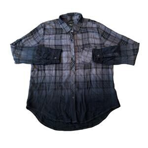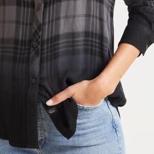 Rails Women's Hunter Dip Dye Plaid Button Down Shirt Charcoal Jet Size M