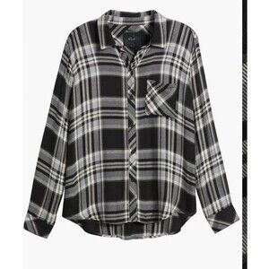 Rails Womens Hunter Plaid Button Down Shirt Black Ivory Flannel Rayon NWT MEDIUM